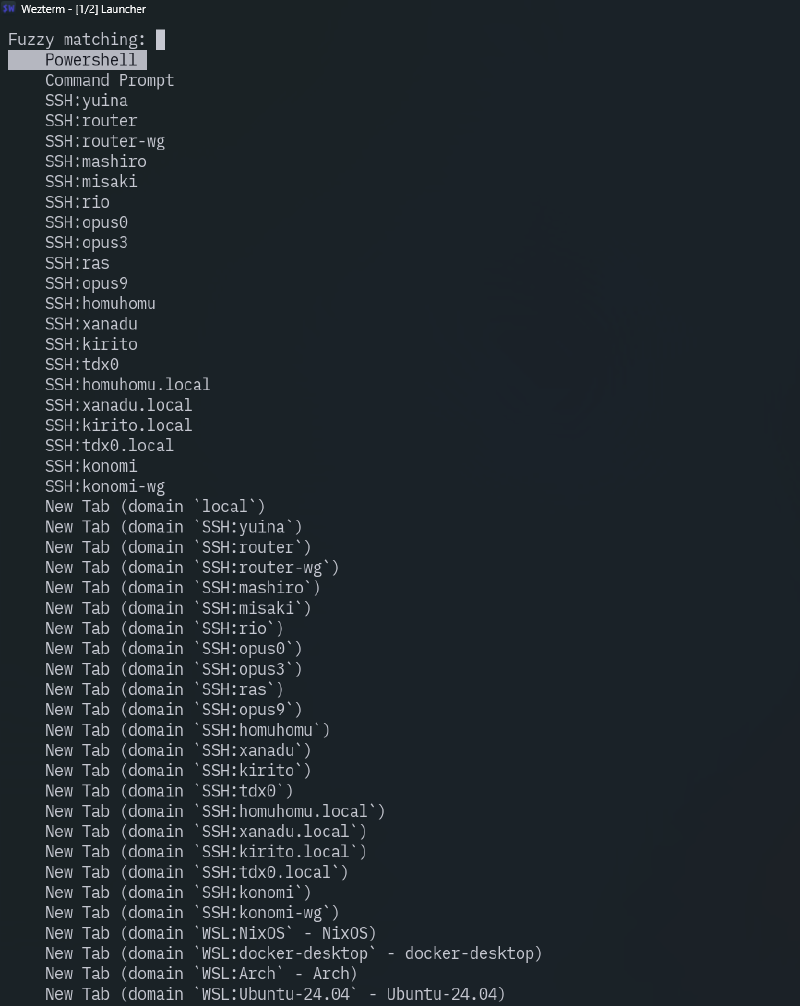 個人的に一番やっかいなのが,SSH周りである. weztermはlibsshがバックエンドの独自のSSHクライアントを実装している. これの利用してSSH接続を1つのドメインとして扱えるようになっており,Linux / macOSでは重宝している. しかしWindowsでは,おそらくlibsshの実装上の問題か,認証エージェント(1Password)と多段SSHを使うとまともに動作しない.