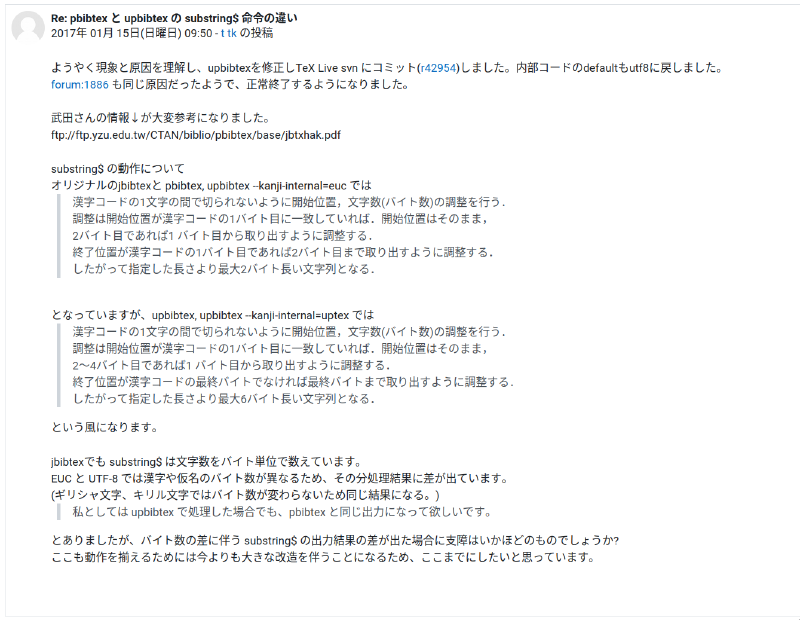 format.stringの取り出す処理が怪しいのは明らかなので,substring$について調べてみたところ,関連のありそうなフォーラム投稿を見つけた.